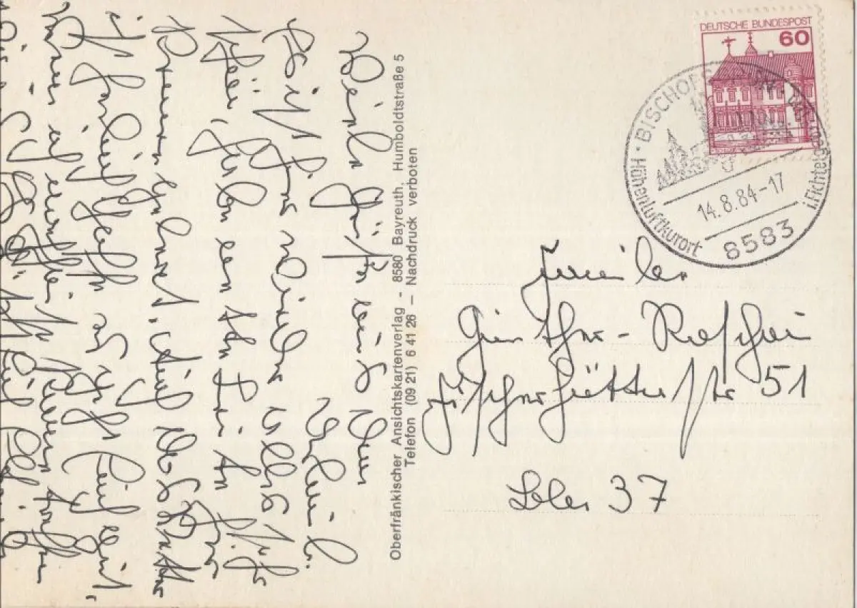 Postleitzahl:95493 (neu) / W 8583 (alt)