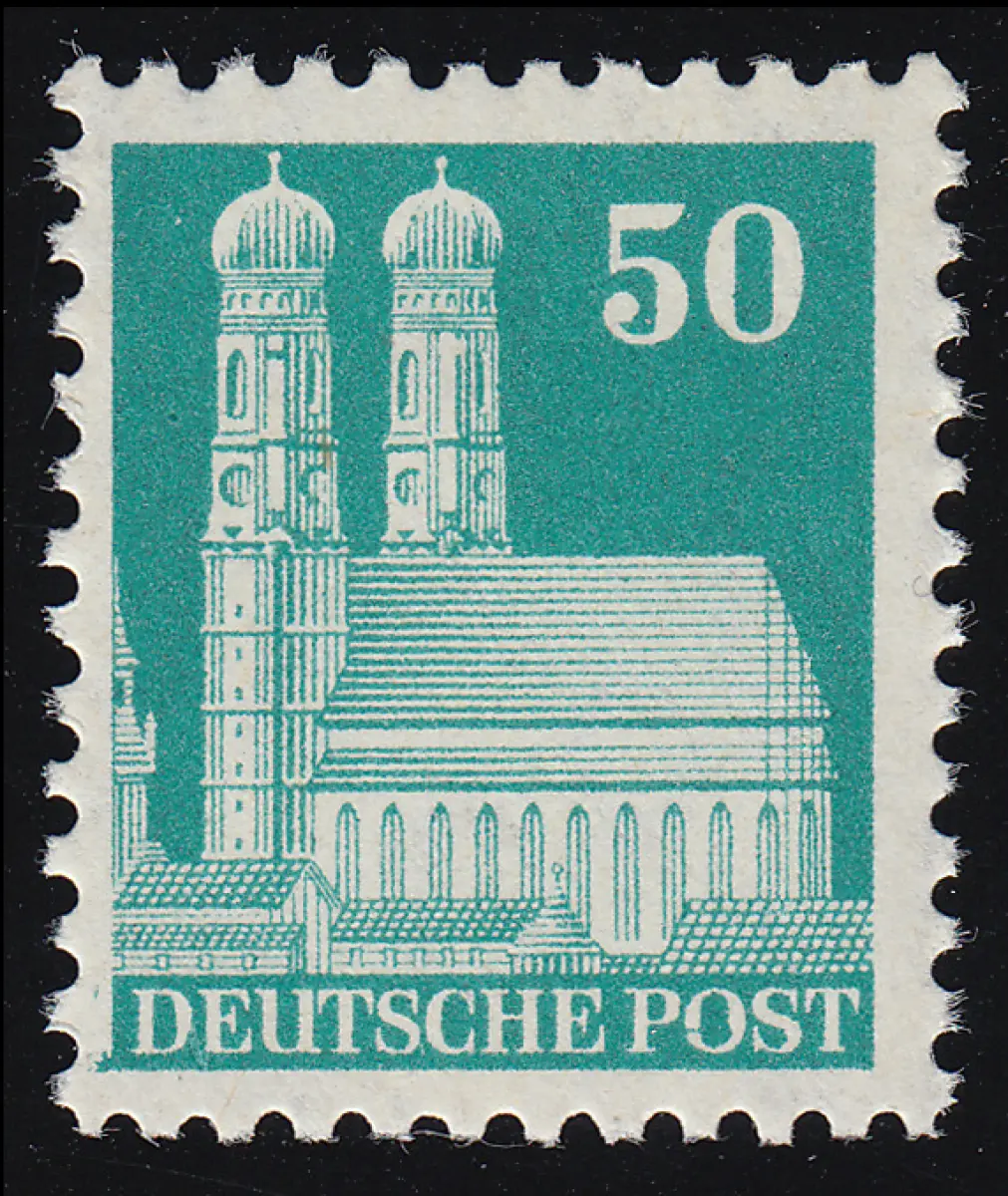 Bizone 92 XF Bauten 50 Pf., blaugrün, weit gezähnt **