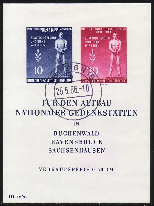Tage-Stempel Leipzig 25.5.1956 Numéro de catalogue: 459-60Bl11 Examen: original Référence produit: 00000000003771