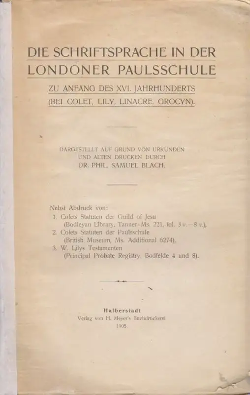 Blach, Samuel: Die Schriftsprache in der Londoner Paulsschule zu Aufang des 16. Jahrhunderts.
