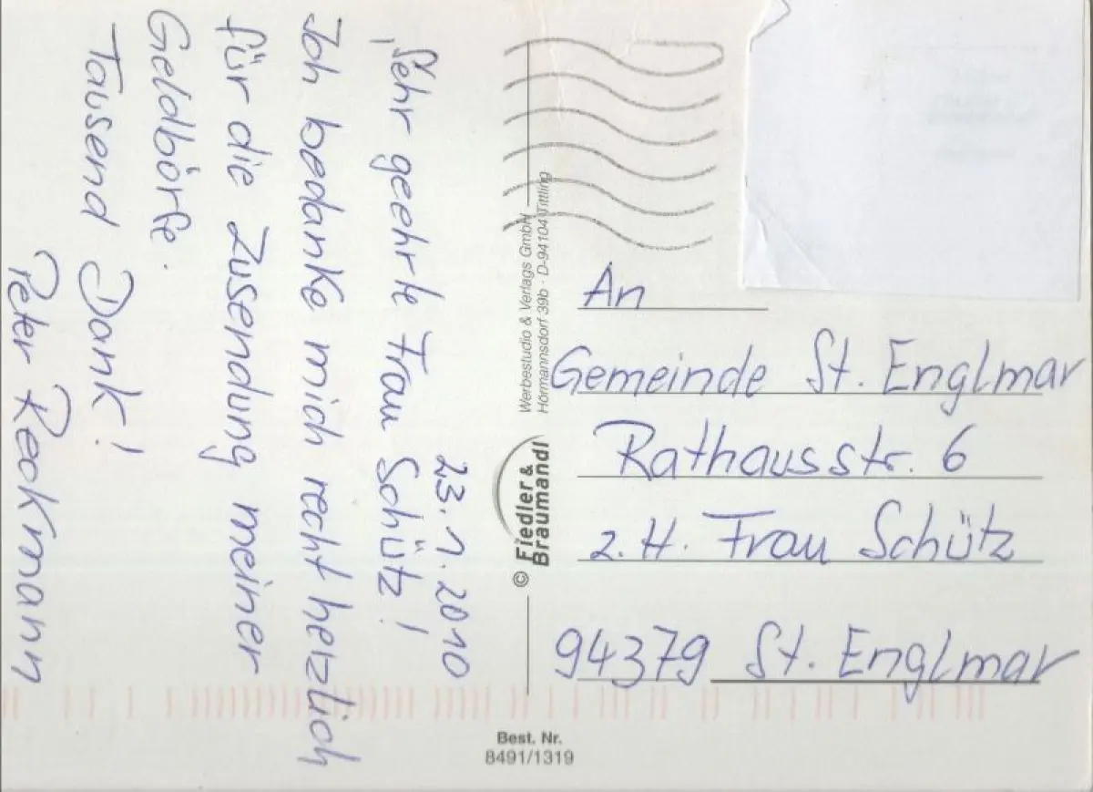 Postleitzahl:93476 (neu) / W 8491 (alt)