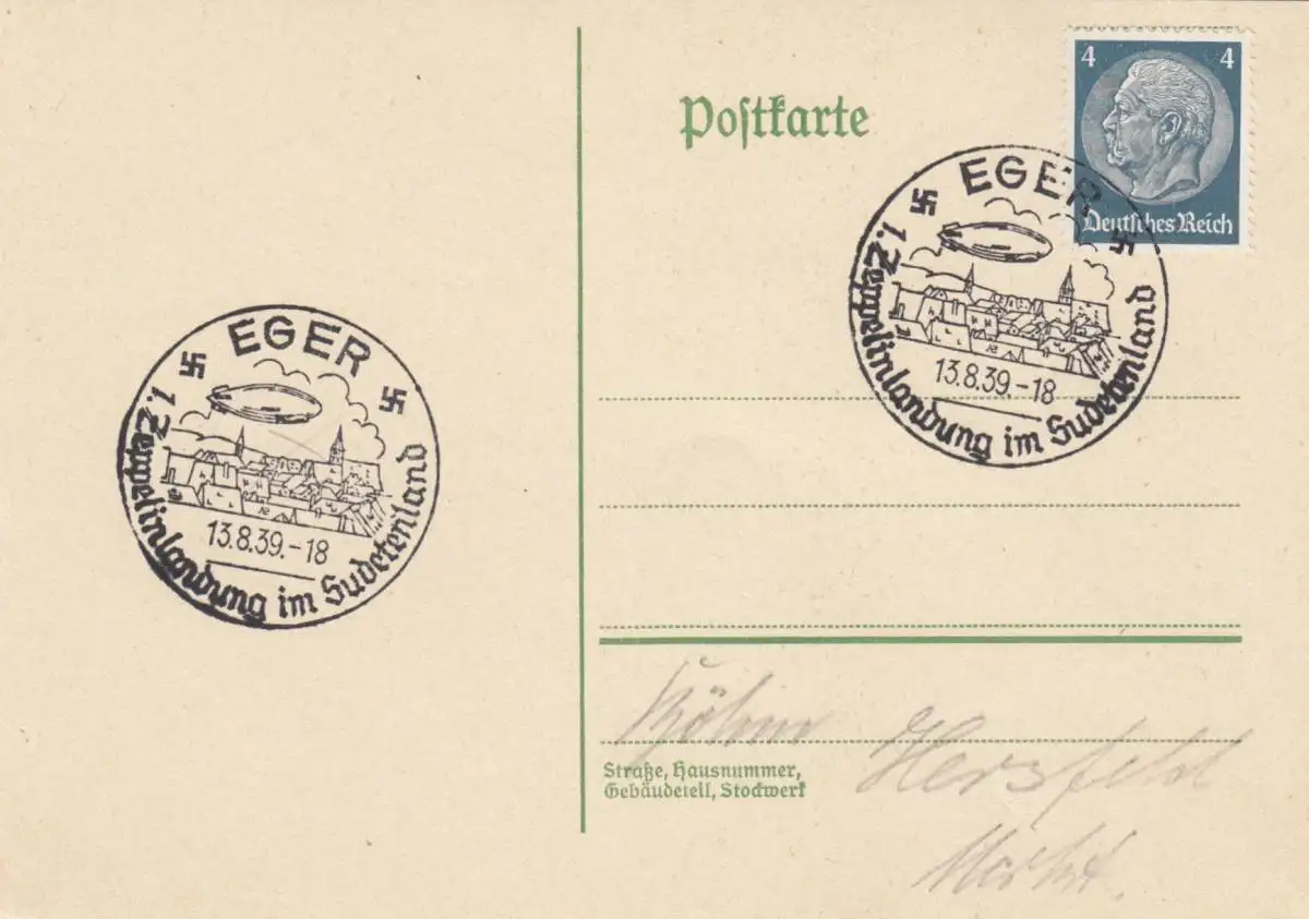 Certificat spécial de timbre blanc 1939: Eger: 1er atterrissage en orteil dans le pays du Sud