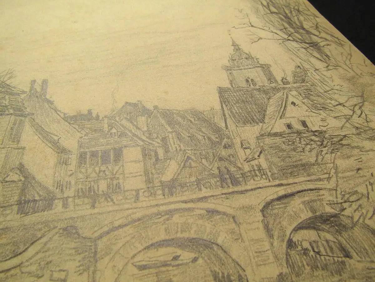 Zeichnung leicht randrissig, etwas angeschmutzt sowie mit kleinem Reiszweckenloch. Gutes Exemplar. Bilder sind ein Bestandteil der Zustandsbeschreibung. Zustand wurde bereits im Preis berücksichtigt.