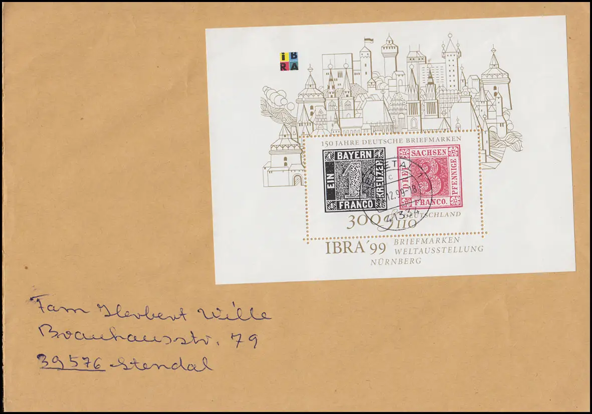 Bloc 46 IBRA Nuremberg 1999: Block en tant qu'EF sur la lettre R NETTETAL 31.12.99