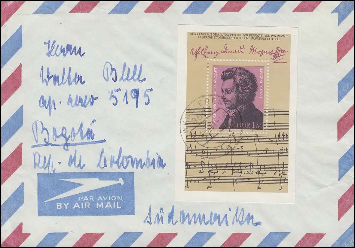 Bloc 62 Wolfgang Amadeus Mozart 1981 sur lettre étrangère WEGELEBEN 4.5.81