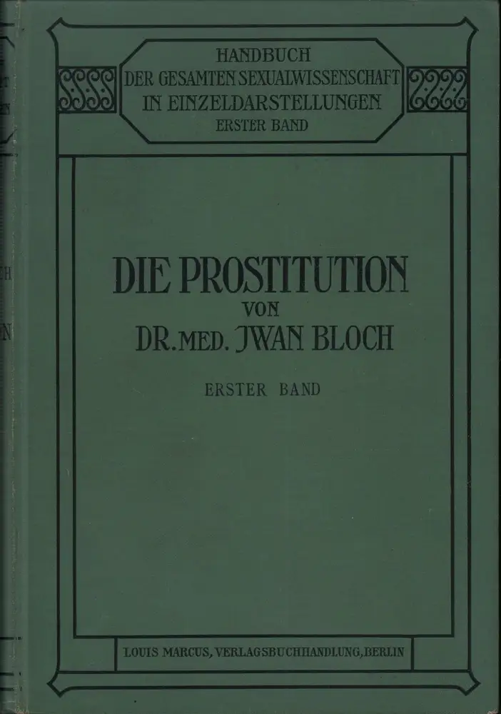 Bloch, Iwan: Die Prostitution. BAND 1 (von 2) apart. 1. bis 10. Tsd. Mit Namen-, Länder-, Orts- u. Sachregister.