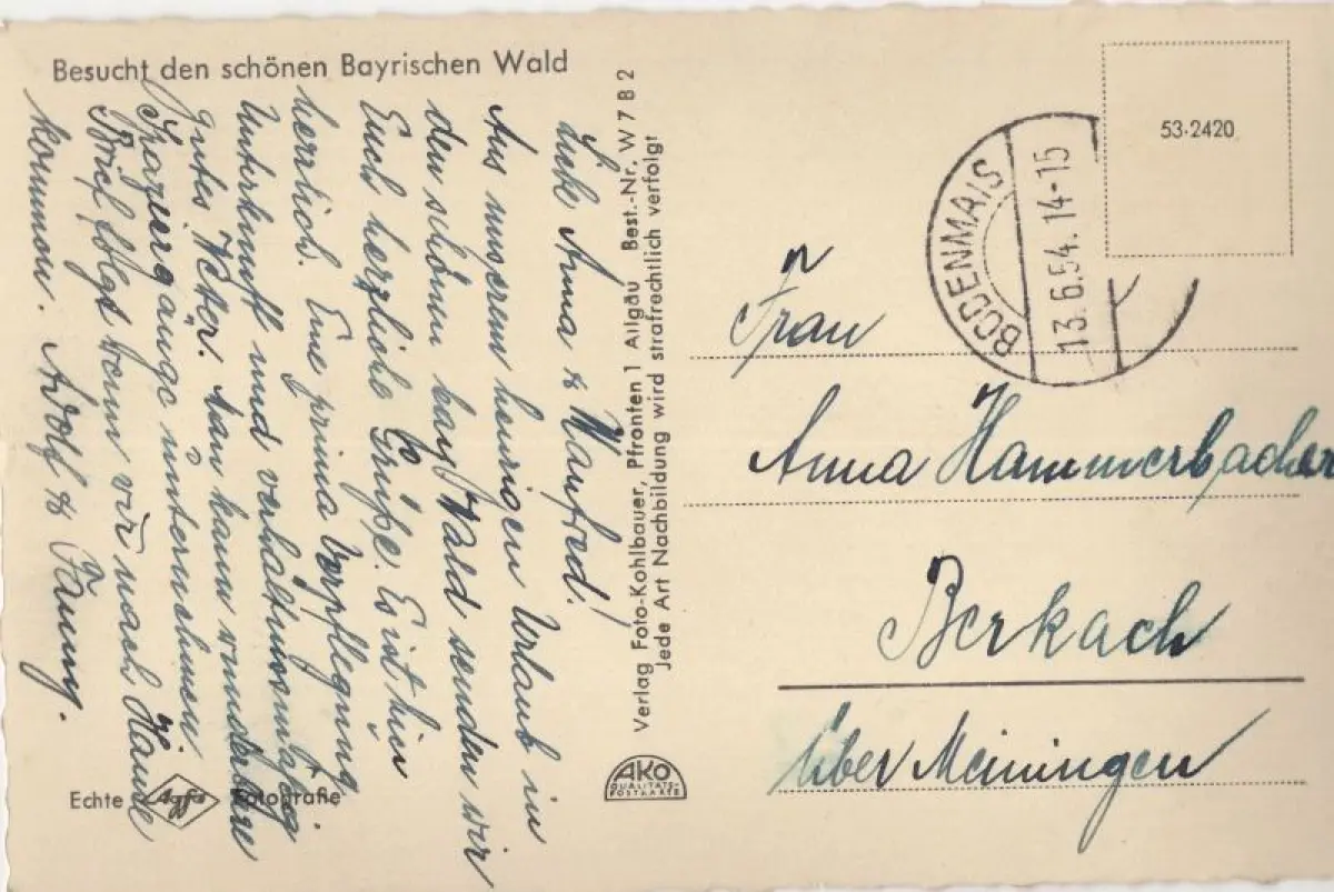 Postleitzahl:94249 (neu) / W 8373 (alt)