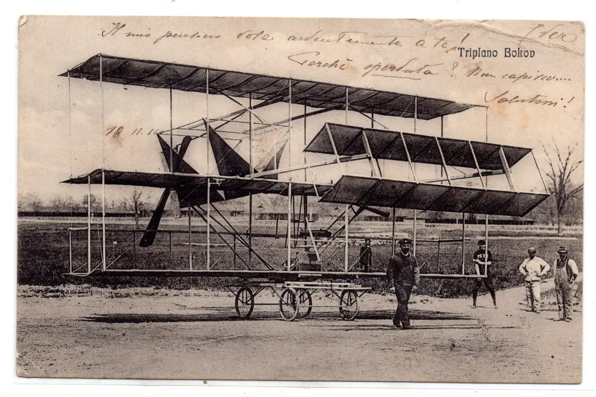 C - Bokov-Dreidecker - Postkarte mit Flugzeug im Vordergrund, gereist am 21.11.16 - Eckfalz Cod.158/182