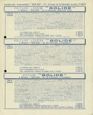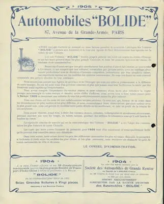4 Seiten DinA4 Société Anonyme des Automobiles Bolide, 87 Avenue de la Grande-Armée, Paris Französischer Text Guter Zustand, gelocht