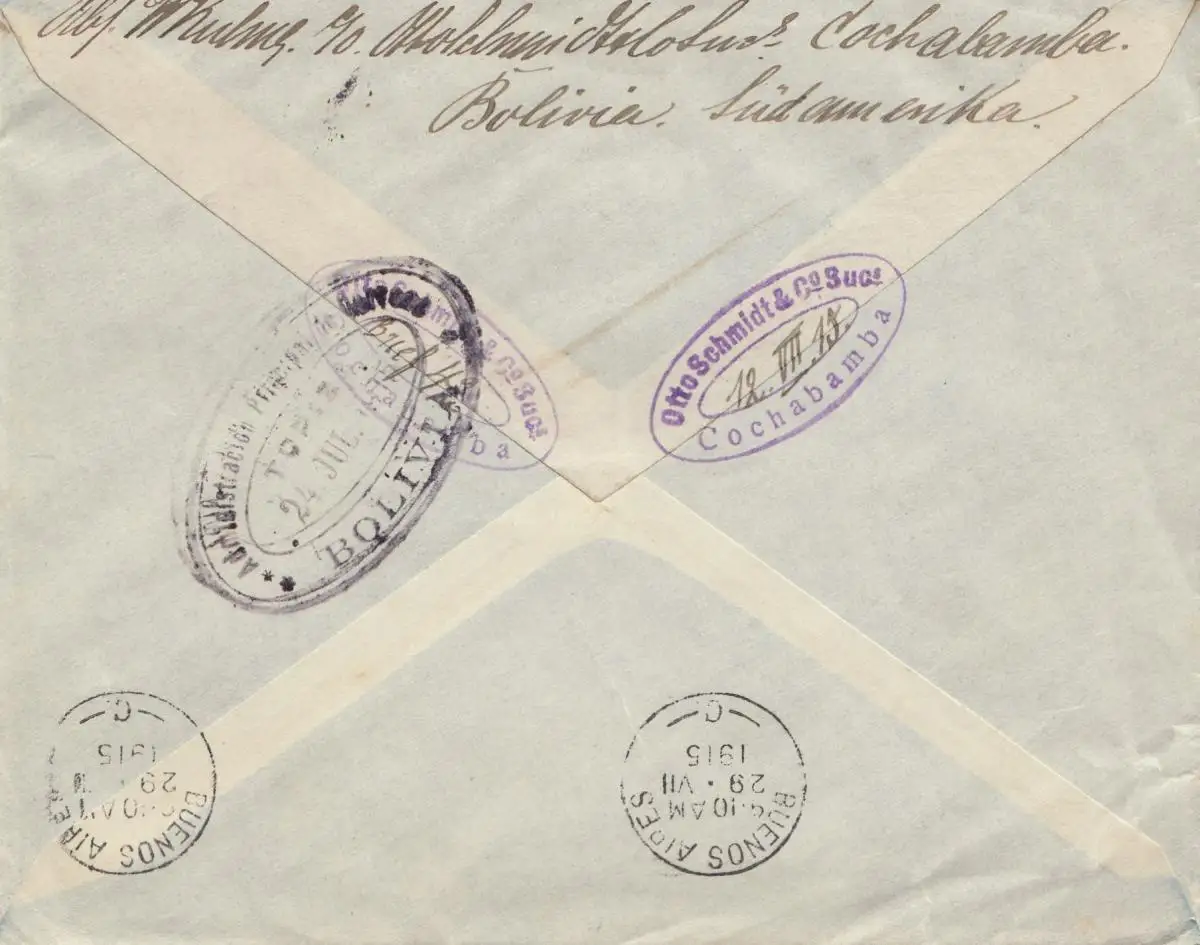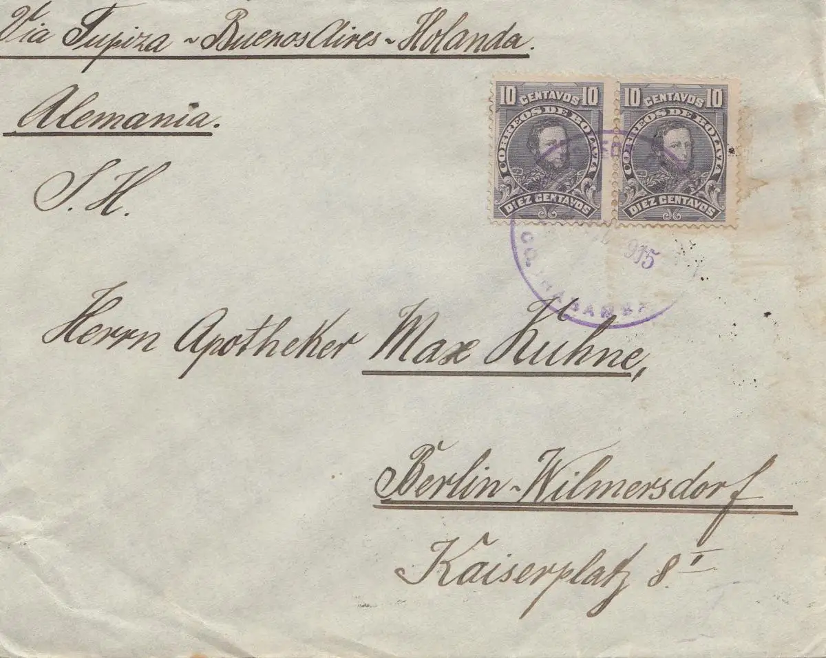 Bolivia Cochabamba via Buenos Aires to Berlin/Germany 1915