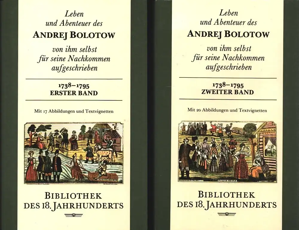 Titel: Leben und Abenteuer des Andrej Bolotow, von ihm selbst für seine Nachkommen aufgeschrieben. (Aus dem Russ. ausgewählt u. übertragen v. Marianne Schilow. Hrsg. u. mit Anmerkungen v. Wolfgang Gruhn. Lizenzausgabe). 2 Bde. (= komplett)