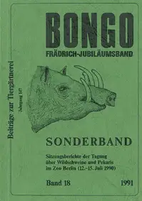 Titel: Bongo Band 18, Frädrich-Jubiläumsband, SItzungsberichte der Tagung über Wildschweine und Pekaris im Zoo Berlin, innen mit Unterschrift Heinz-Georg Klös