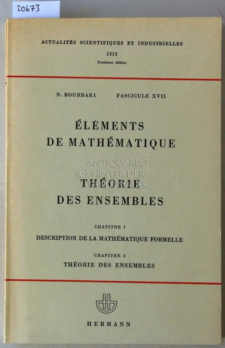 Bourbaki, Nicolas: Éléments de mathématique. Fascicule XVII, Fascicule XX: Théorie des ensembles. (Chapitre 1+2, Chapitre 3 - 2 Bde.) [= Actualités scientifiques et industrielles, 1212 u. 1243].