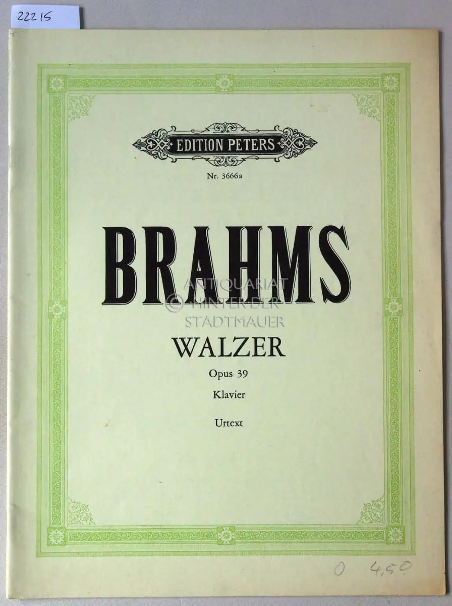 Brahms, Johannes: Walzer Op. 39. Klavier. Urtext. [= Edition Peters, Nr. 3666a] Hrsg. v. Carl Seeman, Revision v. Kurt Stephenson.
