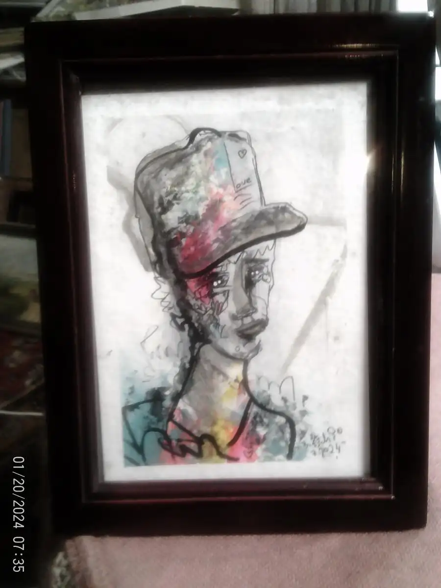 Brain Esch Neuenstadt-Bürg geb.1986"Punkerin mit Kappe" signiert datiert 7.2024 Öl auf Papier