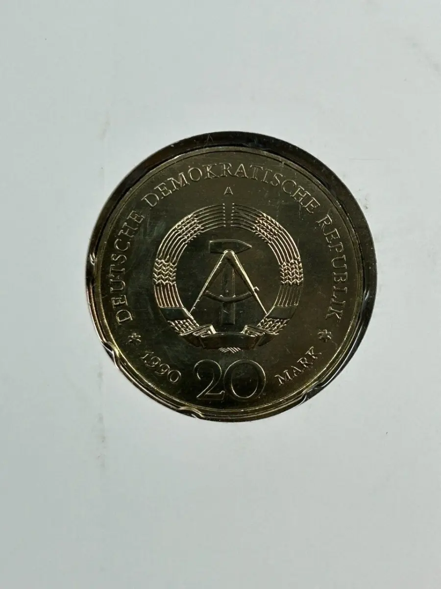Brandenburger Tor 20 Jahre Wiedervereinigung Tabant Trabi Numisbrief DDR 20 M. Dieser Numisbrief ist eine einzigartige Sammlerstück, das anlässlich des 20. Jahrestags der Wiedervereinigung Deutschlands herausgegeben wurde. Der Brief enthält eine 20-Mark-Münze mit dem Motiv des Brandenburger Tors und einem Trabant, einem Symbol der DDR. Mit einem Sonderstempel versehen und von Experten geprüft, bietet dieser Numisbrief eine Echtheitsgarantie für Sammler von Briefmarken und Numismatik-Enthusiasten.