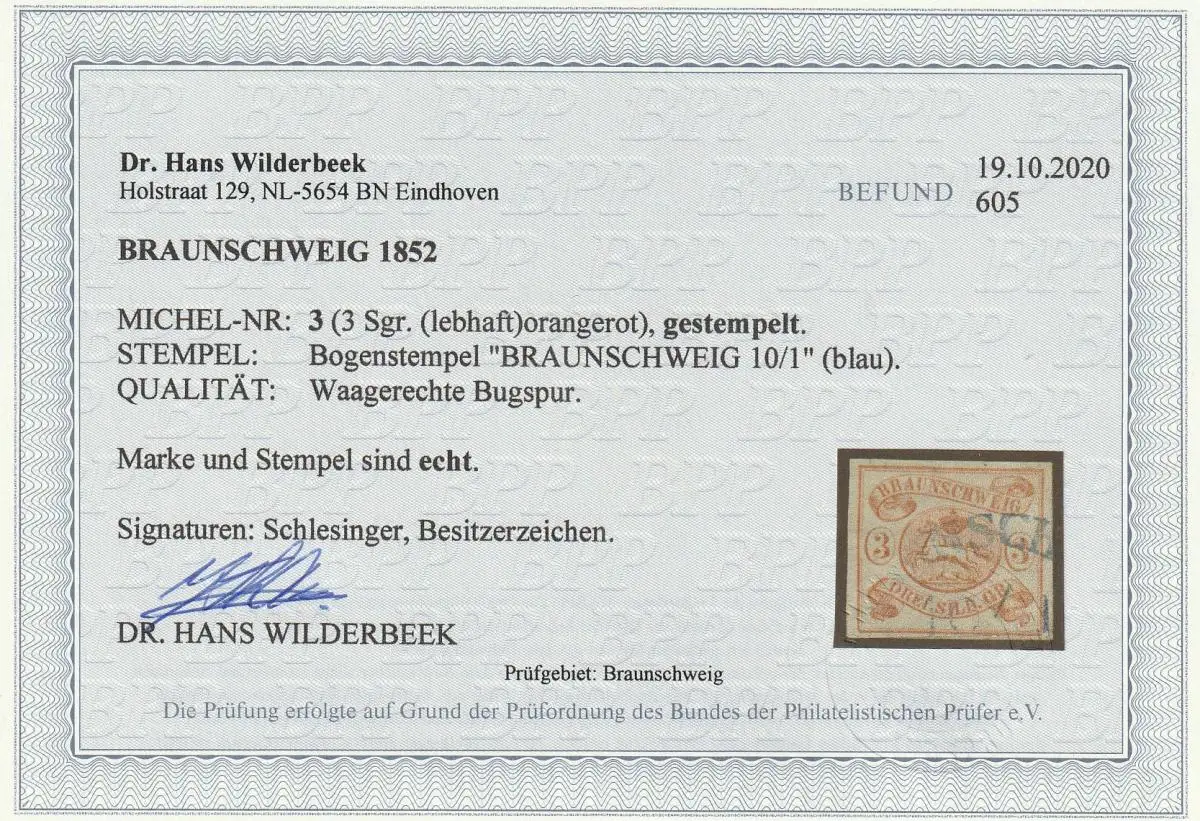 Unauffällige Bugspur, ansonsten einwandfrei und attraktiv. Befund WilderbeekBPP. Michelwert 350,00 €