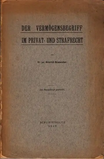 Brauweiler, Heinrich: Der Vermögensbegriff im Privat- und Strafrecht.