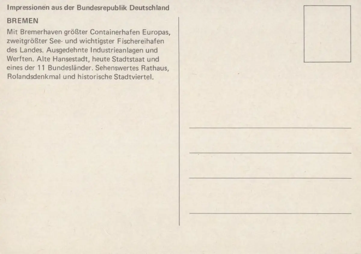 Postleitzahl:28001 (neu) / W 2800 (alt)