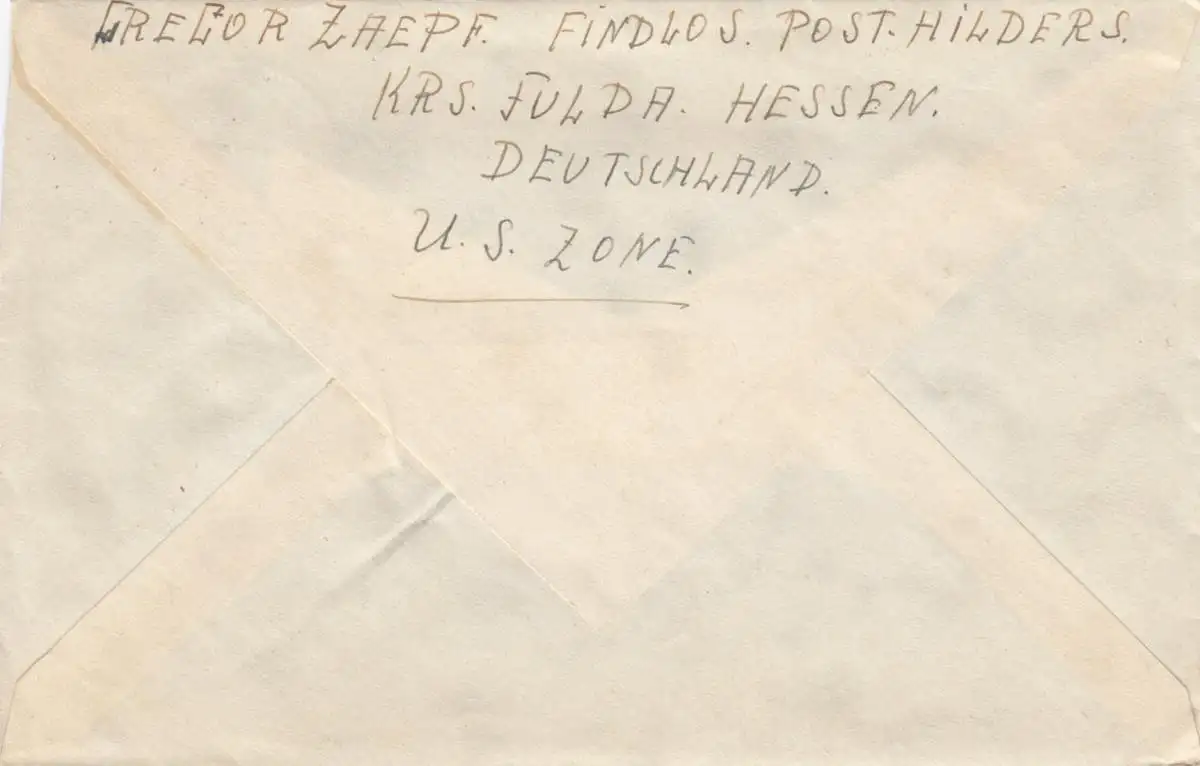 Lettre de Hilders/Fulda en 1948 vers Ilinois/Chicago/USA