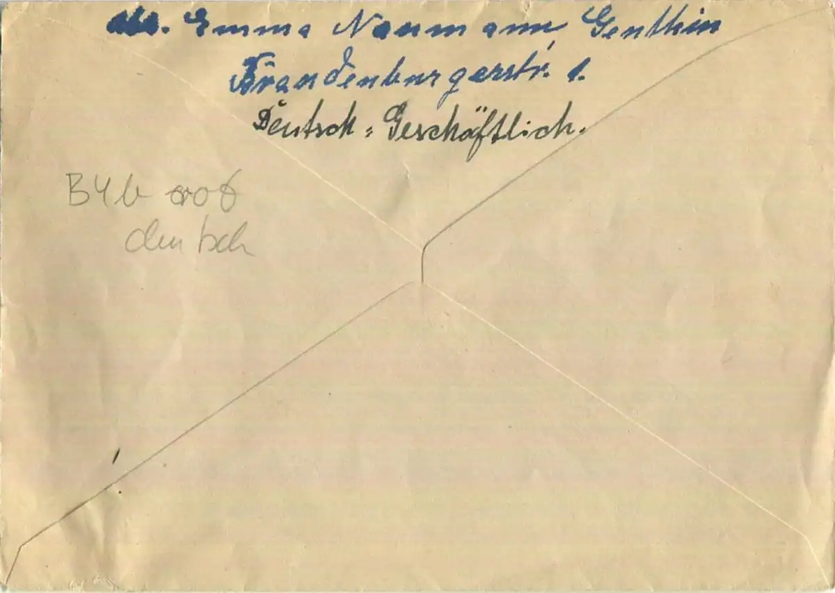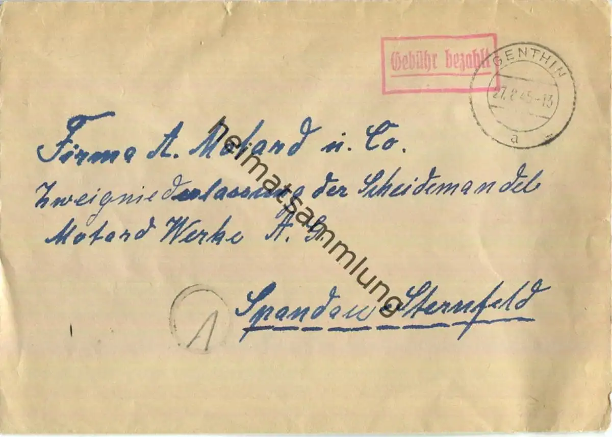 Brief aus Genthin vom 27.08.1945 mit 'Gebühr bezahlt' Stempel B5b in rot