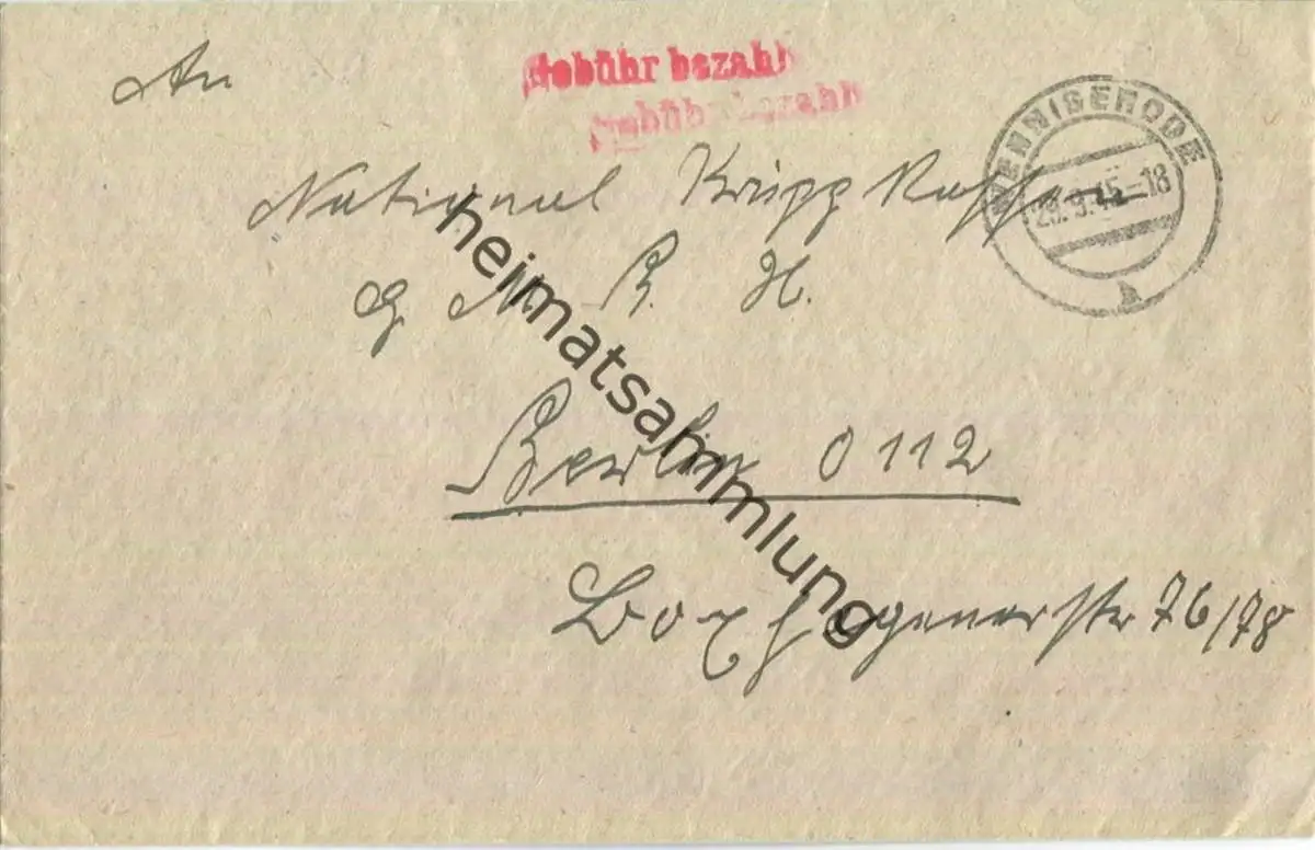Brief aus Wernigerode vom 29.09.1945 mit 'Gebühr bezahlt' Stempel B1a in rot