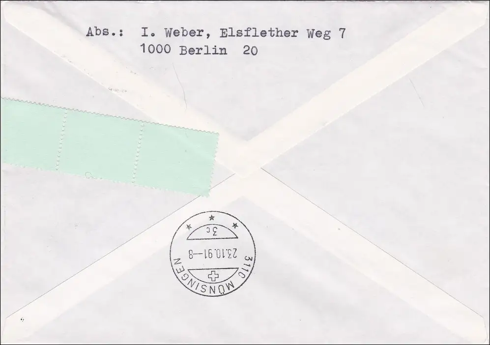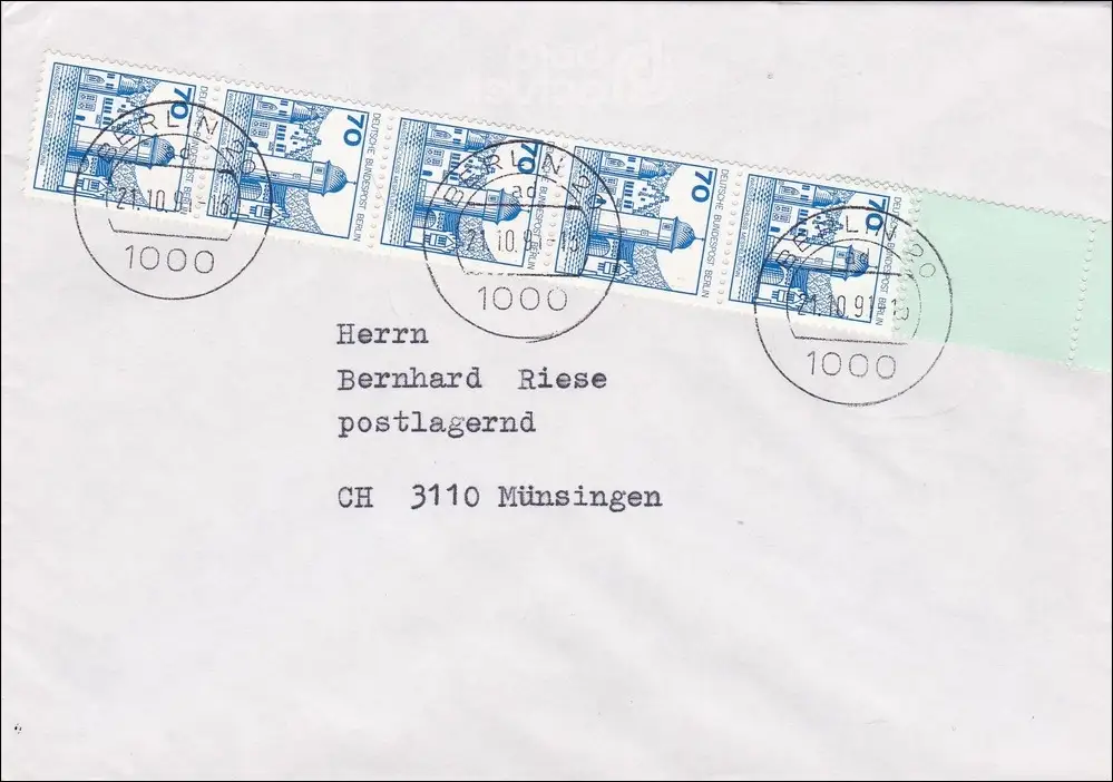 Lettre avec bande de fin de rouleau vers Münsingen 1991