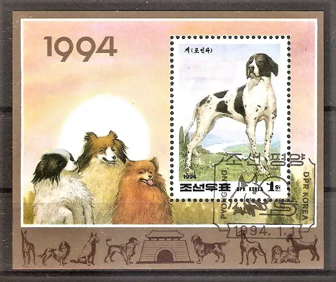 Briefmarke Korea-Nord Block 294 o (Mi.Nr. 3512 C o) Jahr des Hundes 1994 / Pointer