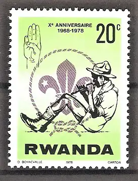 Briefmarke Ruanda Mi.Nr. 914 ** 10 Jahre Pfadfinderbewegung in Ruanda 1978 / Pfadfinderemblem & Flötenspieler