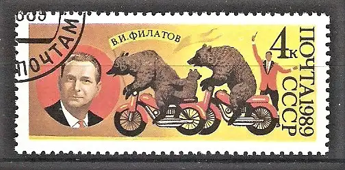 Briefmarke Sowjetunion Mi.Nr. 5986 o 70 Jahre sowjetischer Zirkus - Artisten 1989 / Walentin Filatow (Dompteur) - Bärendressur