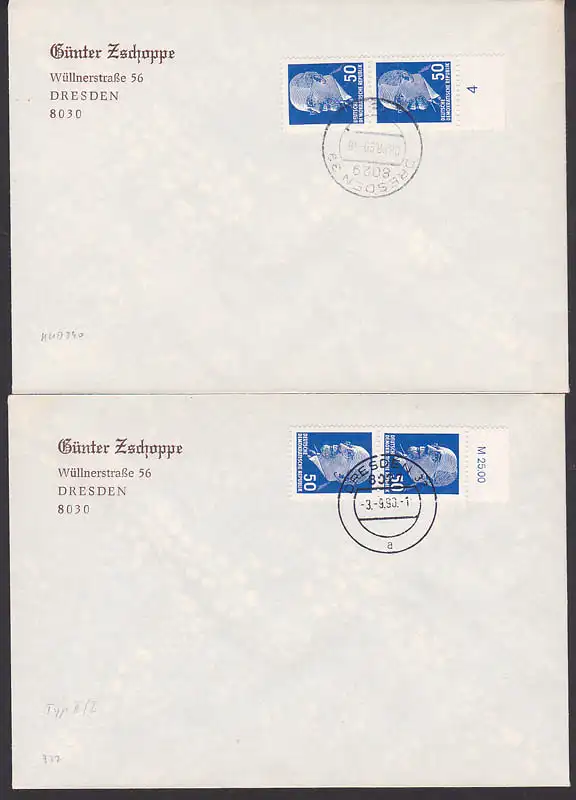 Brillenbügel offen und geschlossen bei 50 Pfg. Walter Ulbricht (937 I/II, II/I) auf Bf über 1,- Porto, unbeschrieben