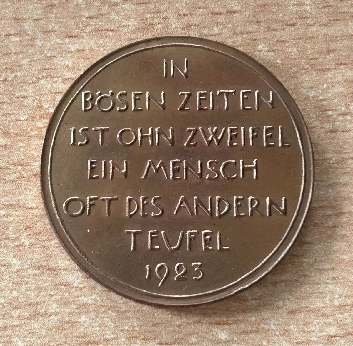 Deutsches Reich Medaille 1923 Not Inflation Wucherer Bronze