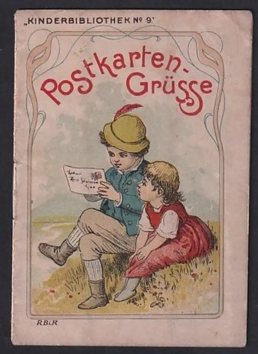 Broschüre 10 Seiten, Postkarten-Grüsse Kinderbibliothek No. 9, Zwei Kinder mit einer Postkarte