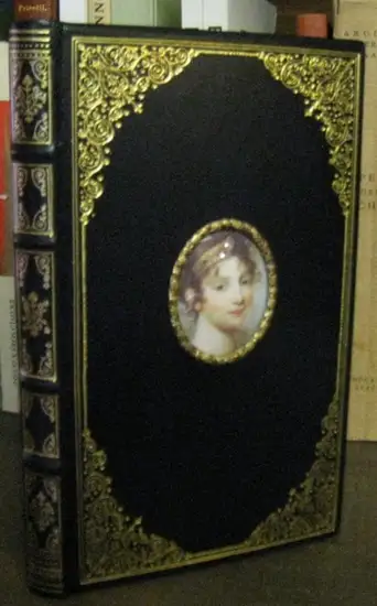 20,5 x 12 cm. Bibliophile Sonderausgabe: Handgebundener schwarzer Original-Lederband auf 4 Bünden mit Dreiseiten-Goldschnitt, handumstochenen Kapitälen, Goldprägeschmuck auf Deckel und Rücken ( alles im Stil des 18. Jahrhunderts ) sowie seidenem Lesebändchen. Im Vorderdeckel eingelegt ist ein farbiges Goldbronze-Medaillon mit dem Bildnis der Luise. Marmorierte Innendeckel und fliegende Blätter. 142 (2) Seiten mit vielen einfarbigen Abbildungen. Auf dem vorderen Vorsatz ein bibliophiles ExLibris-Etikett mit der handschriftlichen Nummer 140. Offenbar unbenutztes, sehr schönes Exemplar in richtig gutem Zustand