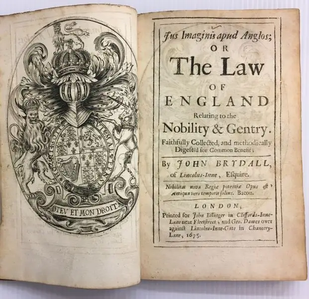 Brydall, John: Jus Imaginis apud Anglos; Intended chiefly for the instruction of young persons. or The Law of England Relating to the Nobility & Gentry. Faithfully collected, and methodically digested for Common benefit.
