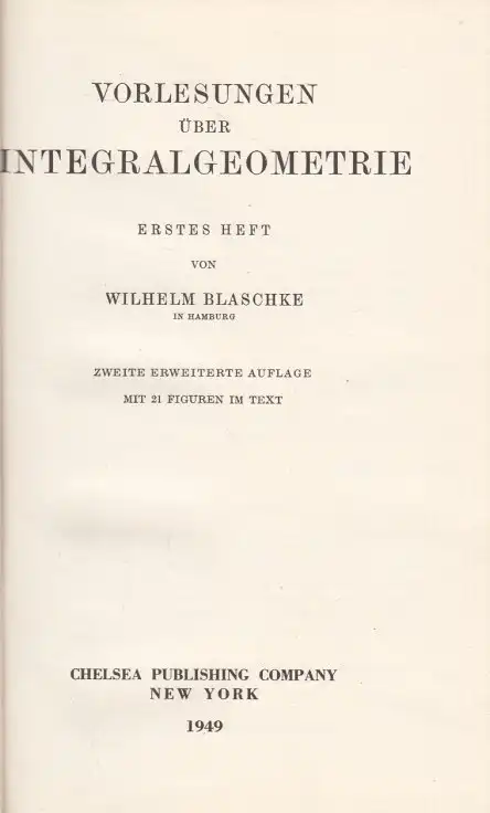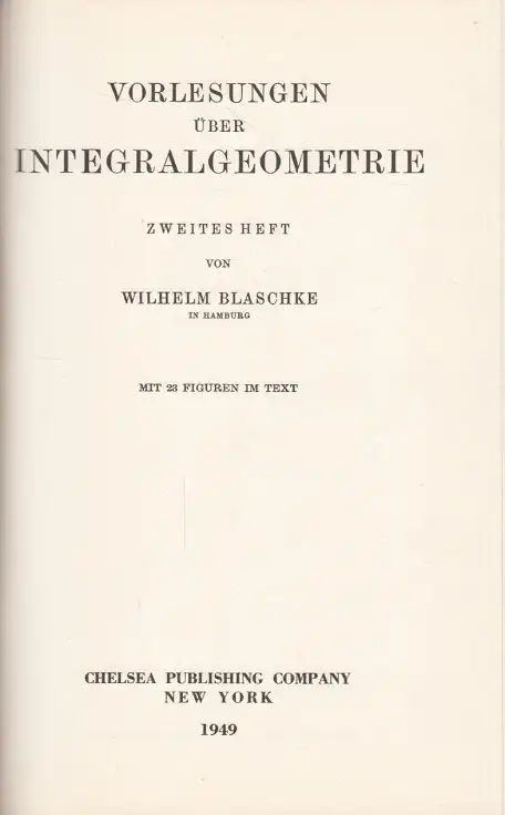 Schlagworte: Blaschke, Kähler, Integralgeometrie, Differentialgleichungen, Naturwissenschaften & Mathematik, Lernhilfen, Mathematik, Naturwissenschaften allgemein