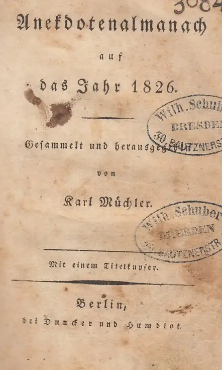 Schlagworte: Anekdotenalmanach auf das Jahr 1826, Lexika & Periodika, Almanache, Alte Drucke
