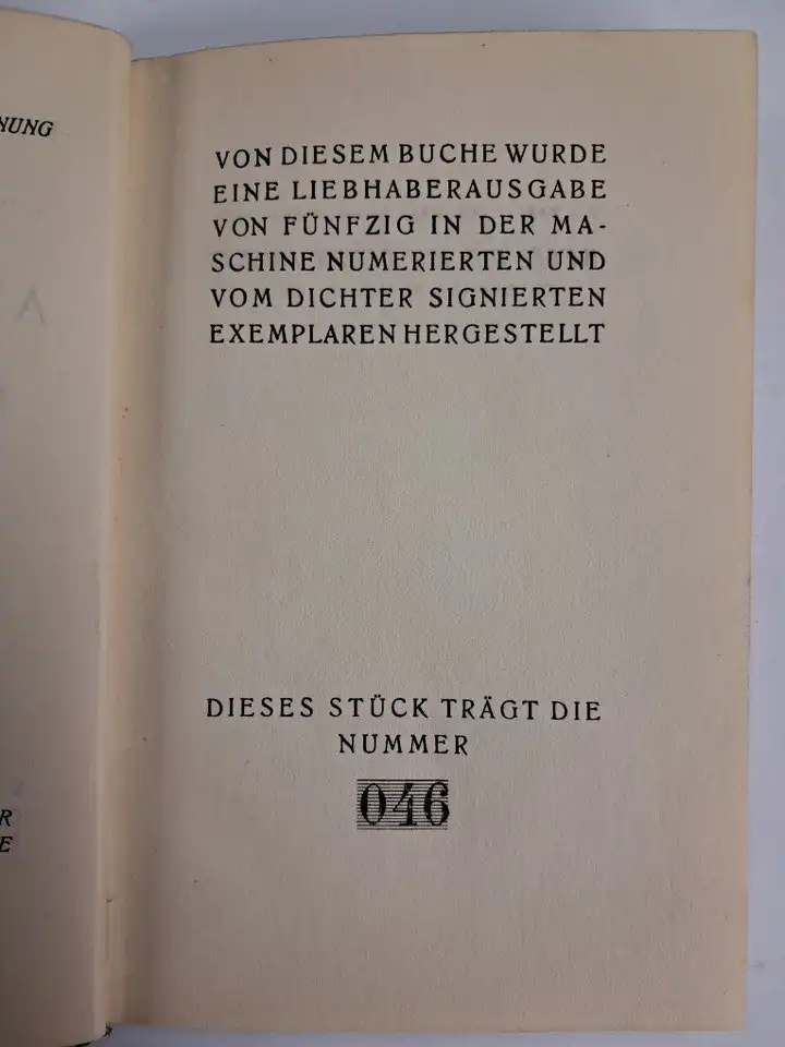 Bemerkungen: Zustand: Einband etwas berieben, Ecken und Kanten etwas bestoßen // Novellenbücher Nr. 2, Exemplar Nr. 46 von 50. Signiert vom Autor.