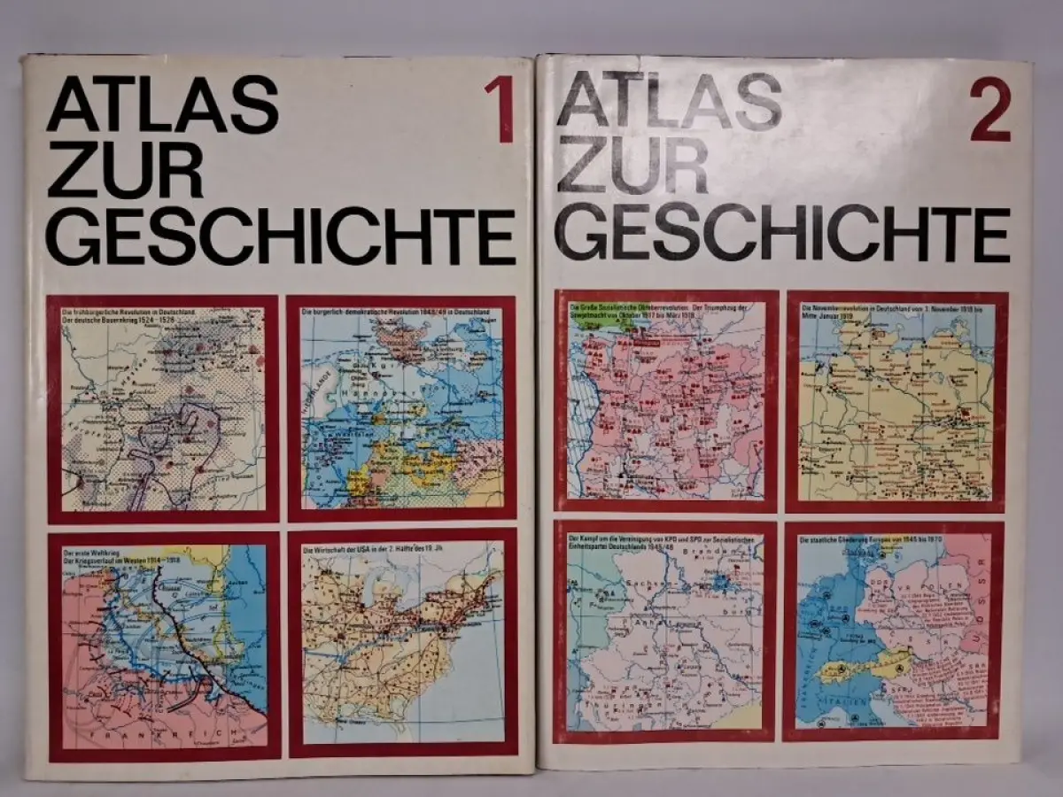 Bemerkungen: Zustand: Schutzumschläge etwas berieben und mit leichten Randläsuren, Rücken etwas gebräunt // Mit zahlreichen farbigen Karten. Herausgegeben von Zentralinstitut für Geschichte d. AdW der DDR, Atlas zur Geschichte. Band 1: Von den Anfängen der menschlichen Gesellschaft bis zum Vorabend der Großen Sozialistischen Oktoberrevolution. / Band 2: Von der Großen Sozialistischen Oktoberrevolution 1917 bis 1976. Unser Produktfoto entspricht dem hier angebotenen Artikel. Alle Artikel befinden sich stets in gebrauchsfähigem Zustand. Gebrauchte Bücher sparen Ressourcen gegenüber Neuware und schonen die Umwelt.
