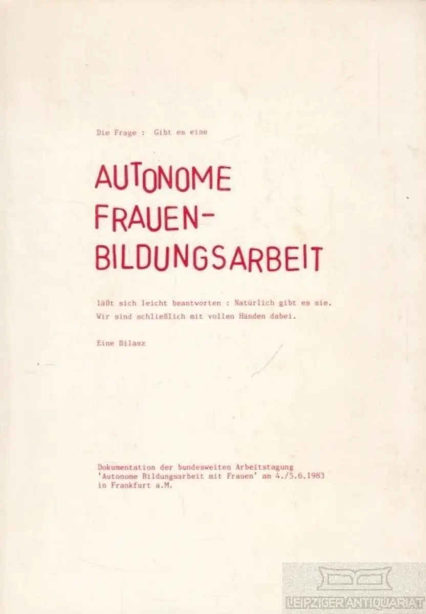 Bemerkungen: Zustand: Einband etwas berieben, Schnitt angeschmutzt, mit zahlreichen Anstreichungen // Herausgegeben von Verein Sozialwissenschaftliche Forschung und Bildung für Frauen e.V. - Frankfurter Frauenschule. Dokumentation der bundesweiten Arbeitstagung "Autonome Bildungsarbeit mit Frauen" am 4./5.6.1983 in Frankfurt a.M