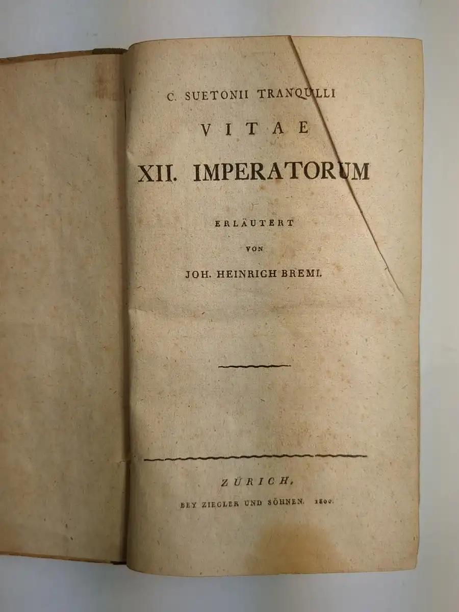 Bemerkungen: Zustand: Einband berieben, Rücken repariert, Ecken bestoßen, Papier leicht gebräunt, mit einigen Bleistiftanstreichungen // Text in Latein mit deutschsprachigen Erklärungen.