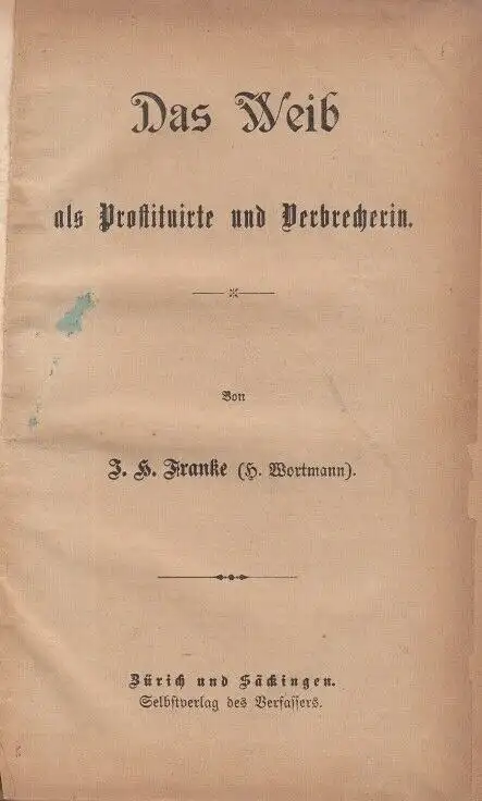 Schlagworte: Das Weib als Prostituirte und Verbrecherin - Franke, J. H, Sachbücher & Ratgeber, Kulturgeschichte, Frauen, Sex, Erotica und Sittengeschichte, Illustrierte Bücher