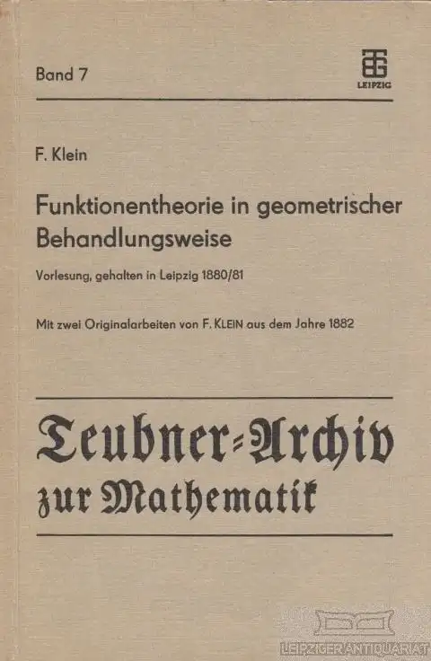 Schlagworte: Klein, Funktionentheorie, Naturwissenschaften & Mathematik, Mathematik, Naturwissenschaften allgemein, Verlagsreihen