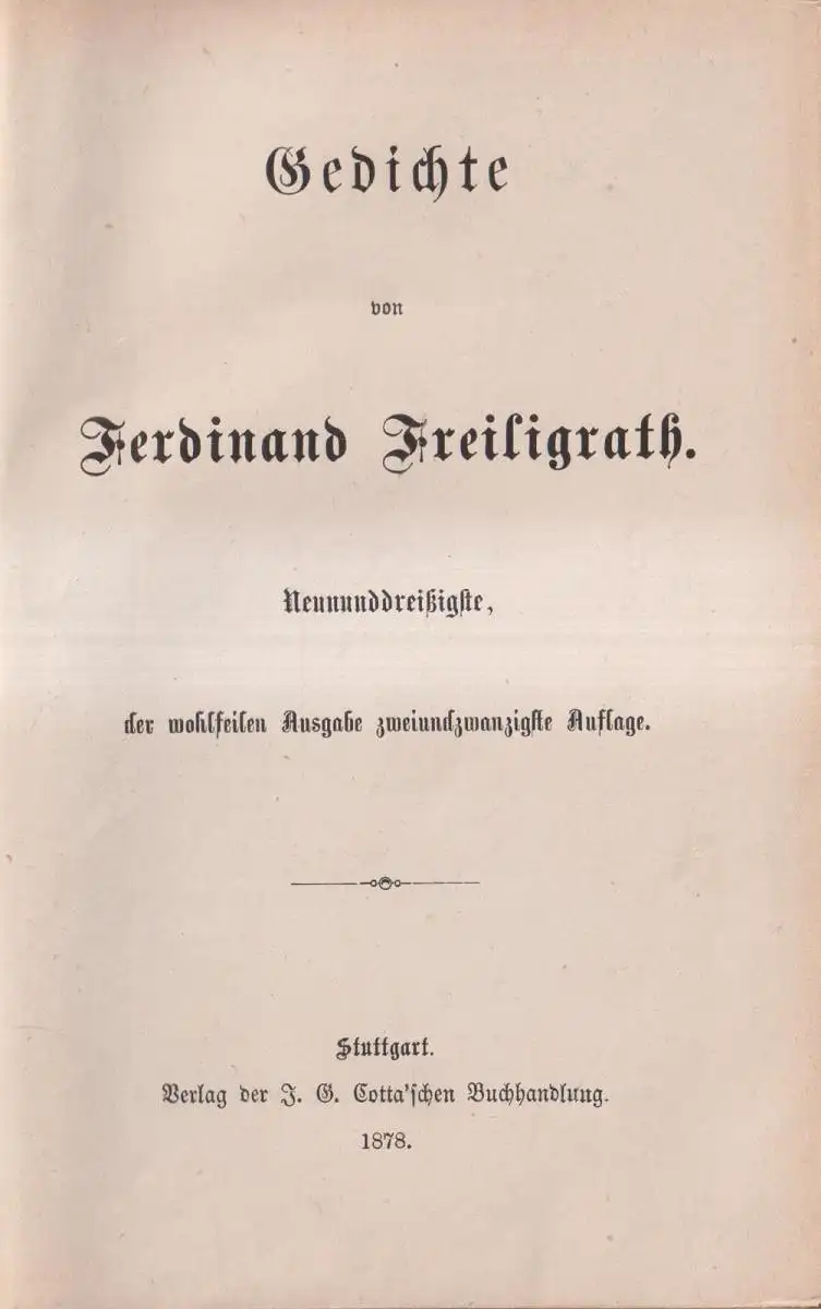 Schlagworte: Freiligrath's Gedichte, Literatur und Unterhaltung, Deutsche Literatur, Literatur allgemein, Literatur bis um 1900, Lyrik und Gedichte, Alte Drucke