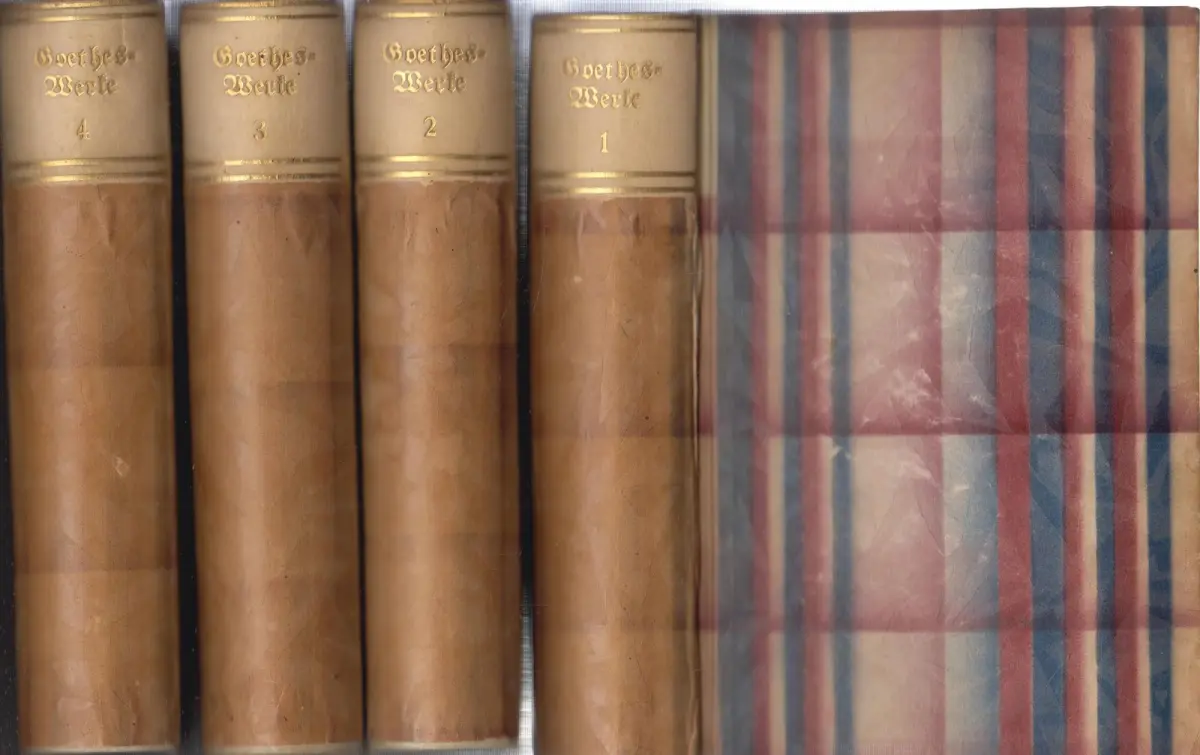 Schlagworte: Handeinband eines unbekannten Buchbinders, deutsche Literatur des 18./19. Jahrhunderts, Johann Wolfgang Goethe, Werkausgabe in 4 Bänden