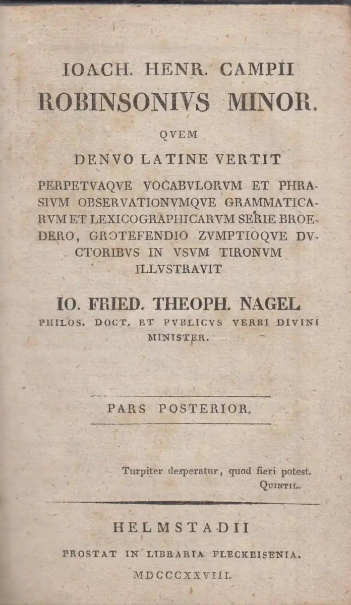 Helmstadii: Fleckeisen, 1828. 352 Seiten 17,5 x 11,0 cm, Halblederband
