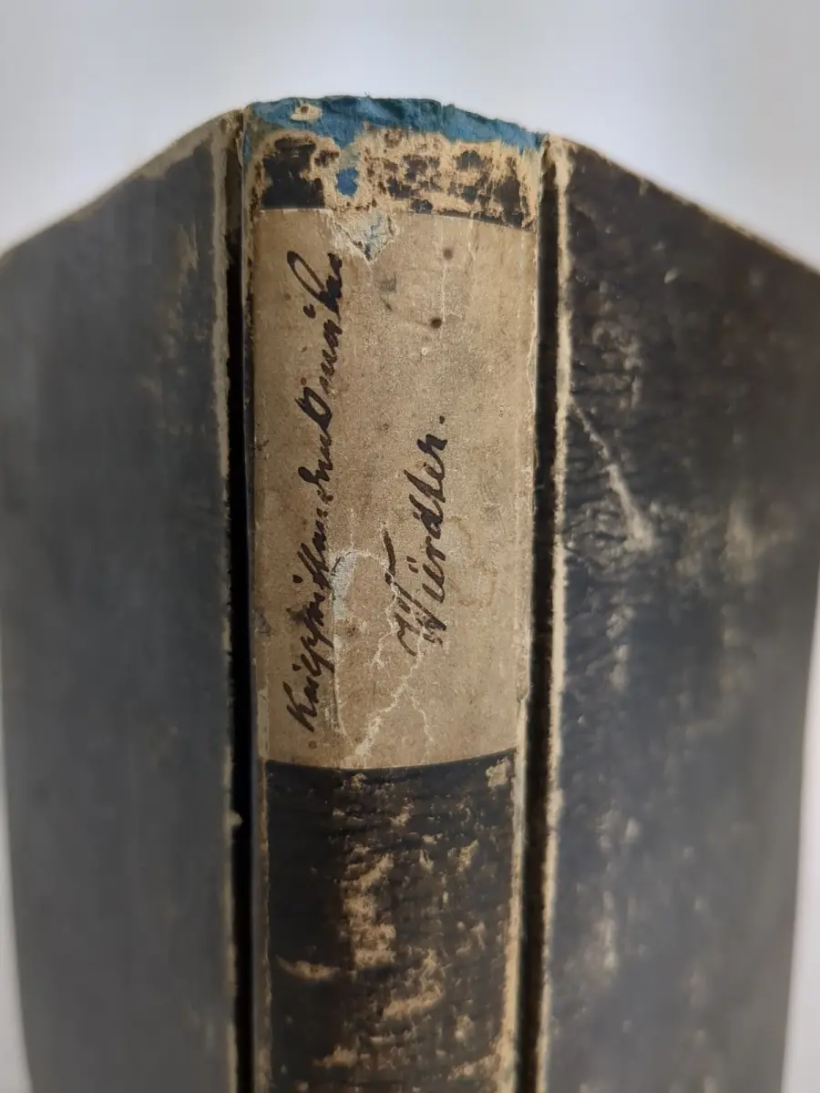 Bemerkungen: Zustand: Einband etwas berieben, besonders Ecken und Kanten, unteres Kapital eingerissen, Bindung haltbar und fest, Papier etwas gebräunt // Text in Fraktur.
