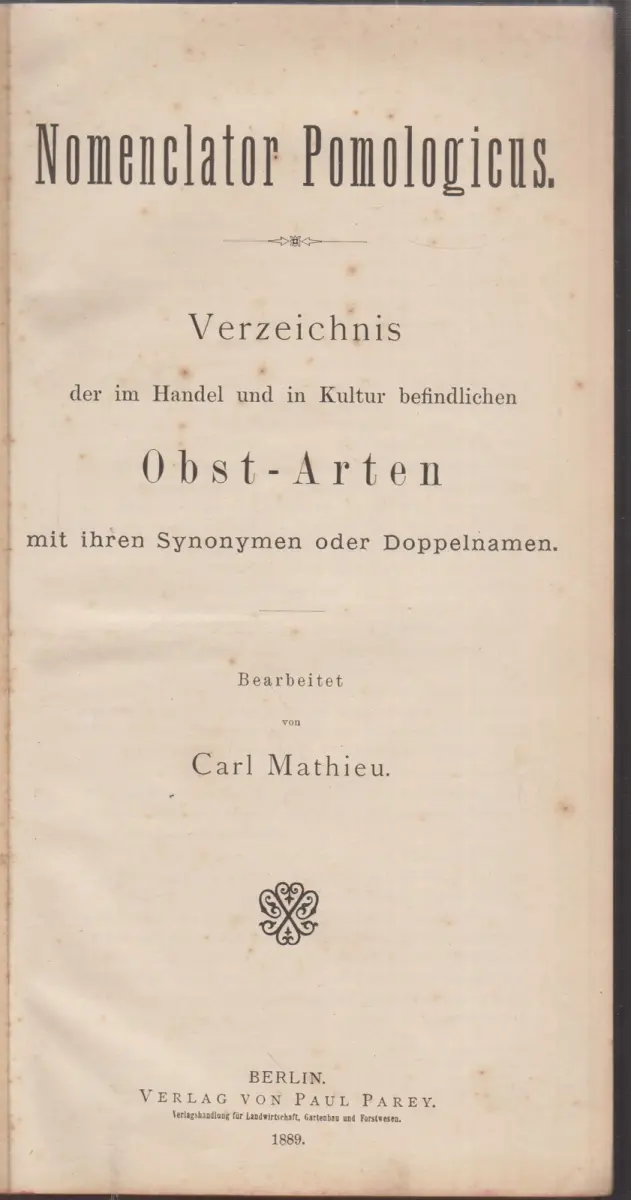 Schlagworte: Pomologie, Verzeichnis der Obstarten mit Synonymen und Doppelnamen