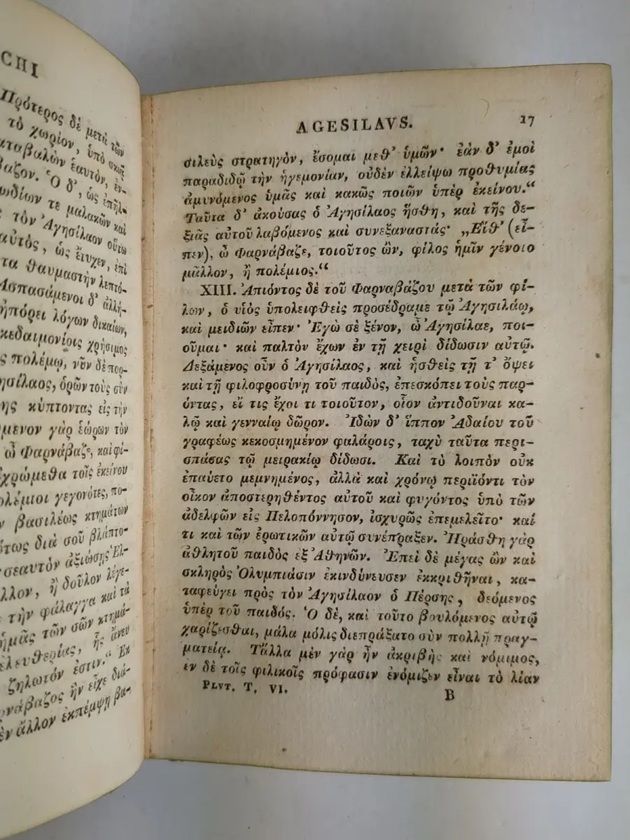 Bemerkungen: Zustand: Einband berieben, Ecken etwas bestoßen, mit Randläsuren, hinterer Vorsatz mit Bleistift-Notizen, Rücken fehlt // Altgriechische Ausgabe. Text in Antiqua