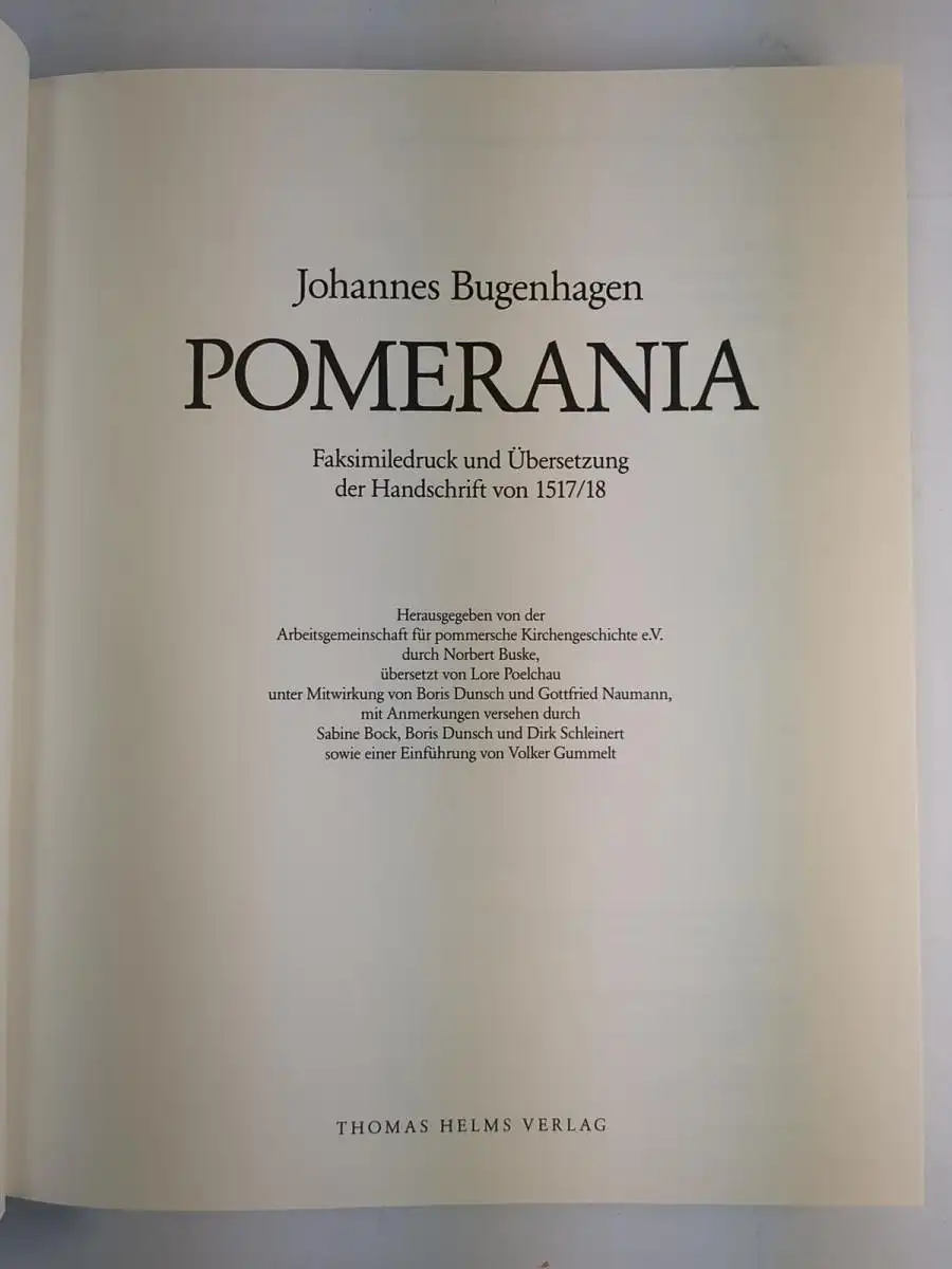 Bemerkungen: Zustand: Einband minimal berieben // Herausgegeben von der Arbeitsgemeinschaft für pommersche Kirchengeschichte e.V., an der Übersetzung wirkten mit Boris Dunsch und Gottfried Naumann, mit Anmerkungen versehen durch Boris Dunsch, Dirk Schleinert und Sabine Bock, mit einer Einführung von Volker Gummelt. Erstmals wird die 1517/18 vom späteren Reformator Pommerns, damals noch Rektor der Ratsschule in Treptow a.d. Rega, verfasste Geschichte Pommerns in deutscher Übersetzung vorgelegt. Den Seiten der lateinischen Handschrift, die sich im Besitz der Universitätsbibliothek Greifswald befindet, ist die Übersetzung gegenübergestellt. Zwei einführende Aufsätze und etwa 500 Anmerkungen zu historischen Sachverhalten, erwähnten Personen, topographischen Gegebenheiten und Besonderheiten lateinischer Formulierungen und ihrer Übertragung bilden die Ergänzung des Textes..